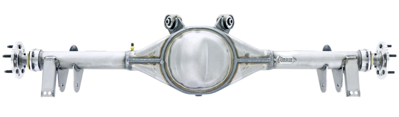 These 9-inch kits are offered with either the housing centered between the wheels for a symmetrical look or with the pinion centered to locate the driveshaft in the middle of the vehicle. All kits utilize Ford-style late large-bearing housing ends (Torino) and 31-spline axles with a 2.5-inch brake space for compatibility with aftermarket brake kits. Housings do not include suspension or shock mounts, as they are intended for builders fabricating custom mounts designed to fit the vehicle.
